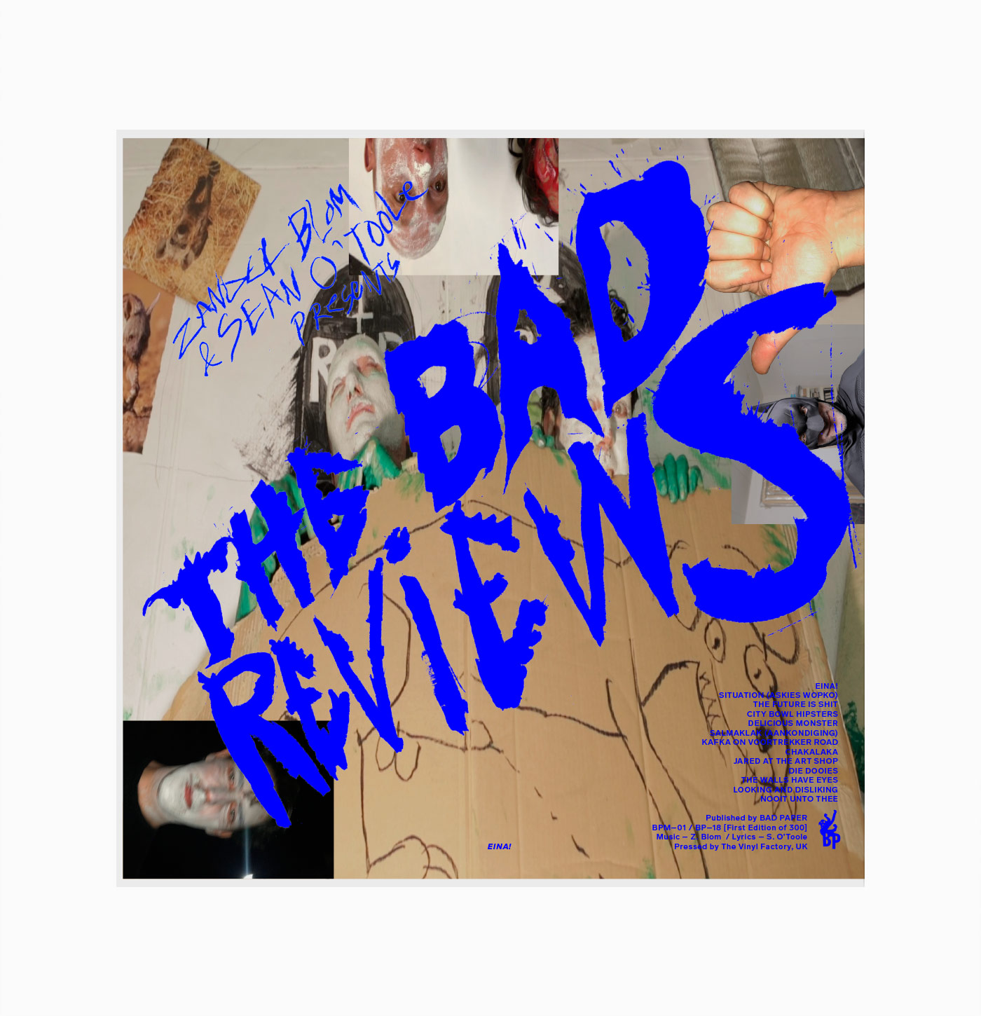 The Bad Reviews is a studio-based art, music and performance project by artist Zander Blom and writer Sean O’Toole. Their collaboration grew out of a series of free-form improvisations held at Blom’s Cape Town studio between January—June 2018. Blom, who has previously released five albums, provided the musical arrangements, while O’Toole contributed mostly spontaneous vocals and wails.